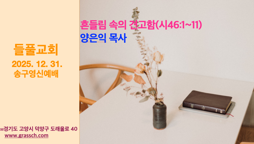 흔들림 속의 견고함 (시 46:1~11) 1. 흔들림의 현실 오늘 본문은 천지가 개벽하는 엄청난 혼란과 ‘흔들림’ 속에서도 무너지지 않고 하나님을 바라보는 한 시인의 고백이자 다짐입니다. 2, 3, 5, 6절에 걸쳐 ‘흔들림’이라는 단어가 계속해서 등장합니다. 땅이 변하고, 불변의 상징인 산이 흔들려 바다에 빠집니다. 이는 삶의 기반이 송두리째 뽑혀 나가는 실존적 위기입니다. 우리가 의지하고 믿었던 것들이 사라질 […]