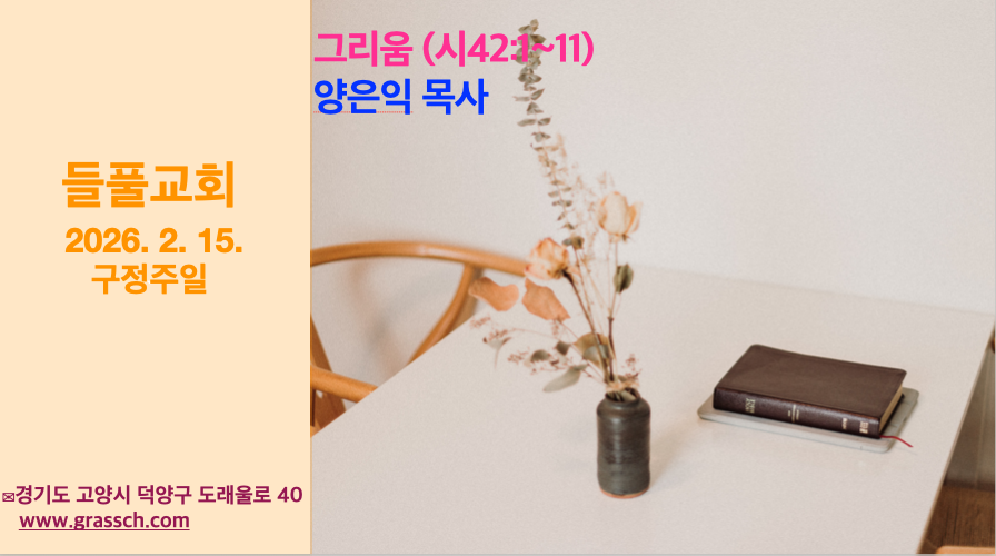 그리움 (시 42:1~11) 1. 설날, 그리움의 날 시 한 편 보고 시작하겠습니다. 나태주 시인의 ‘그리움’입니다. 지구 위를 걷고 있는 모든 사람은, 누군가 한 사람씩을 간절히 그리워하며 살고 있습니다. 그리움이 있어 우리는 추운 겨울을 견디고, 먼 길을 마다치 않고 달려갑니다. 그리움은 우리 마음속에 하나씩 들어 있는 작고 따뜻한 난로 같은 것입니다. 오늘도 내 마음의 난로에 […]