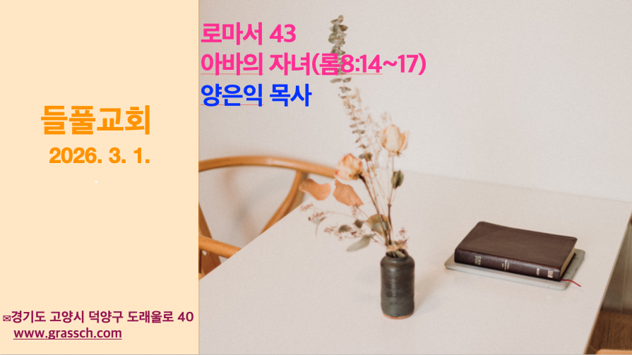 아바의 자녀 (롬 8:14~17) 오늘 말씀은 참 따뜻하고 힘이 나는 말씀입니다. 후회와 약함, 그리고 두려움이 끊이지 않는 세상을 향해 선포하는 복음이 이 안에 들어 있습니다. 주님께서 은혜를 주셔서, 오늘 말씀을 통해 우리 모두에게 새 힘을 주시기를 소망합니다. 1. 이름: 관계의 탄생 오늘 본문에는 두 개의 핵심적인 호칭이 나옵니다. 하나는 ‘하나님의 자녀'(14, 16절)이고, 다른 하나는 […]